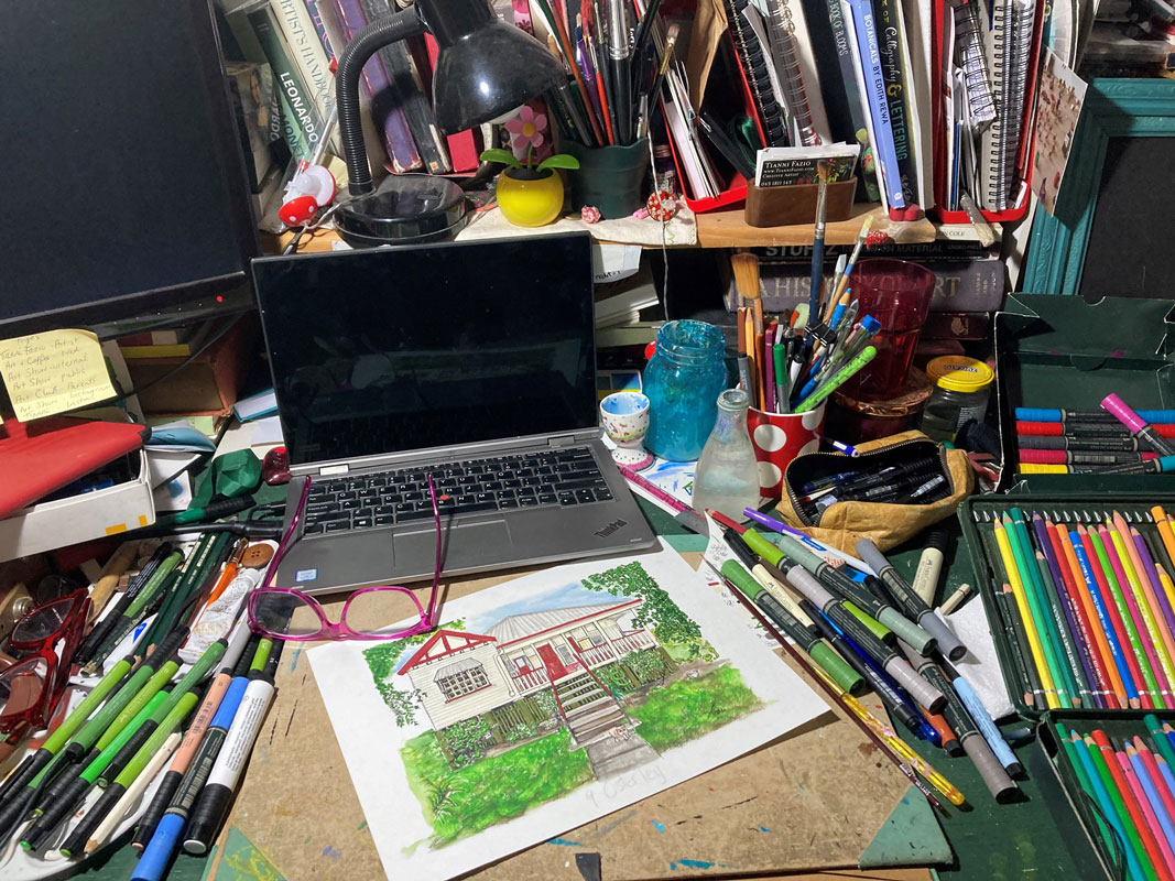 Once you have decided to proceed with your illustration, contact me below. We will discuss who your commission is for, collect images and other information. If you have a deadline like a birthday or another date, please mention it when you make contact. I look forward to talking with you about your home.